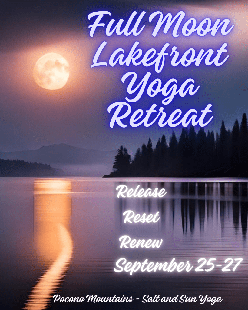 Join us for a weekend of Full Moon Magic! You’ll spend the weekend at a lovely lakefront property in Bushkill, PA, in the lovely Pocono mountains, honoring the Full Moon and enjoying your time on the water, practicing yoga, and connecting with others. We’ll take nature walks/hikes, kayak, canoe, or paddleboard (weather permitting), and talk about the Harvest Moon and how to work with its energy.