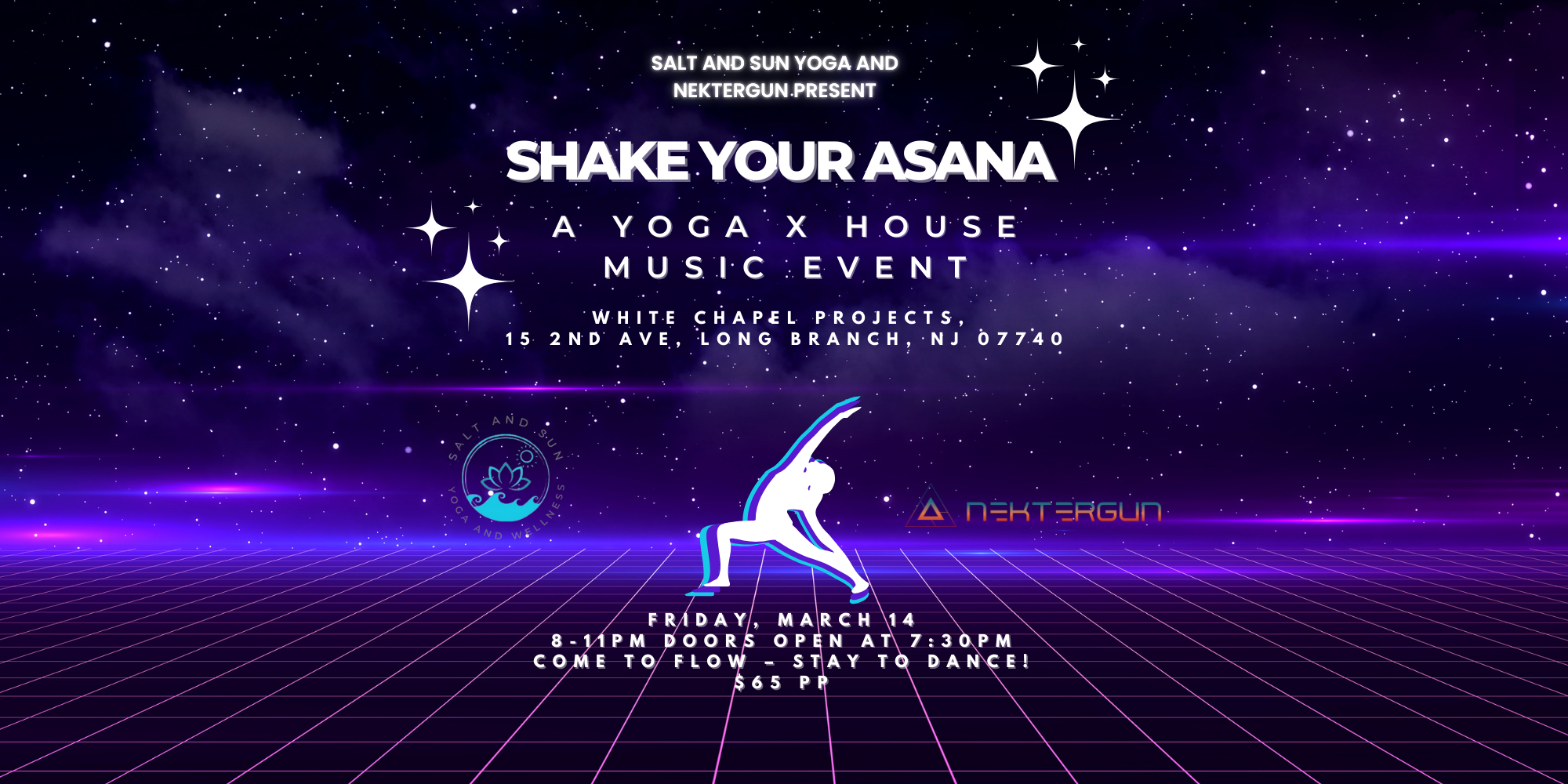 Come play, dance, and connect at the Shake Your Asana Yoga X House Music event! A collaborative event designed to immerse yourself in your practice and get lost in the music you love.